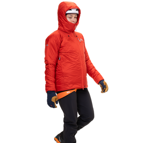 Extensive testing has shown us that PrimaLoftⓇ Gold Hi-Loft Ultra insulation with Cross Core™ aerogel technology is the best synthetic fill currently available for this application, highly thermally efficient even when wet, fast drying and resilient in the face of constant packing and unpacking, it remains mobile enough for seconding steep pitches of climbing and wearing for long periods. With 120g/m2 PrimaLoftⓇ used through both the body and arms, the Alpamayo is actually slightly warmer than its men’s equivalent, the Fitzroy.