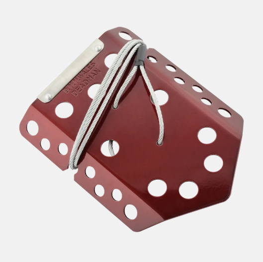 A steel wire loop allows the Deadman to be buried deeply beneath snow while retaining an accessible and strong attachment point.