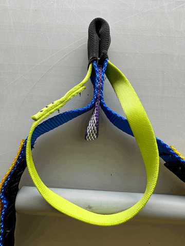 These ladders also feature Skot's patent pending flattened spreader bar. This unique spreader bar allows hero stepping on low angle terrain, reduces movement of the spreader and reduces wear on the webbing that makes up the main body. Ladders still feature my unique clip loop for your daisy chains or leashes